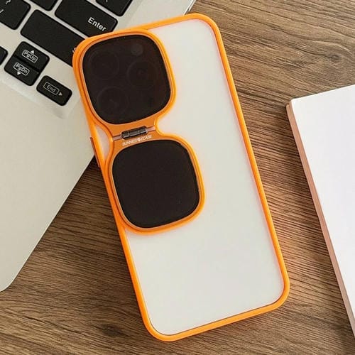 Estuche para Teléfono iPhone 15 Pro con Soporte para Gafas de Sol Metal TPU + PC (Naranja)