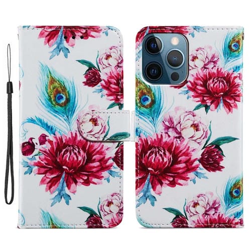 Estuche para Teléfono iPhone 15 Pro Cuero Dibujo Flor de Pavo Real