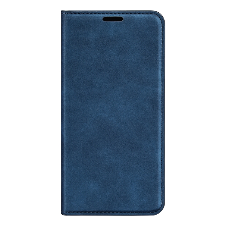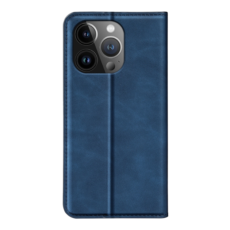 Funda de Teléfono iPhone 15 Pro Cuero Succión Magnética Piel Retro (Azul Oscuro)