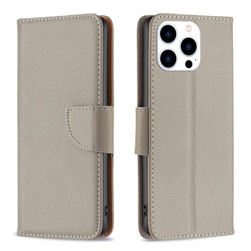 Funda de Cuero Flip para iPhone 15 Pro Litchi Texture Pure Color (Gris)