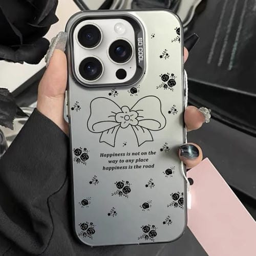 Pour iPhone 15 Pro Max Silver Paint PC TPU Hybrid Phone Case (Nœud floral noir)