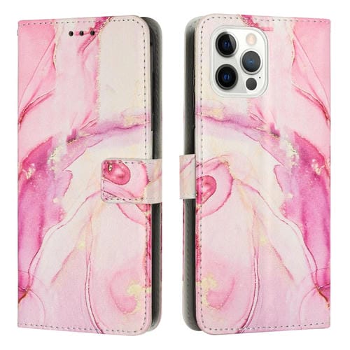 Estuche para Teléfono iPhone 15 Pro Max Cuero Patrón Mármol Pintado (Oro Rosa)
