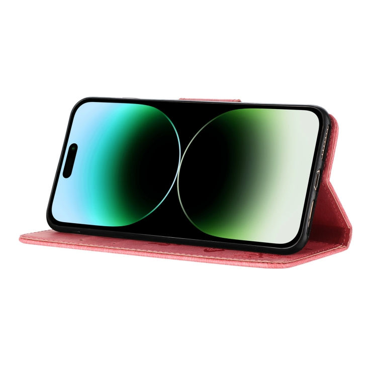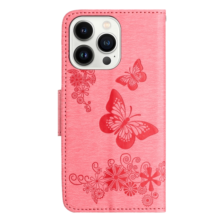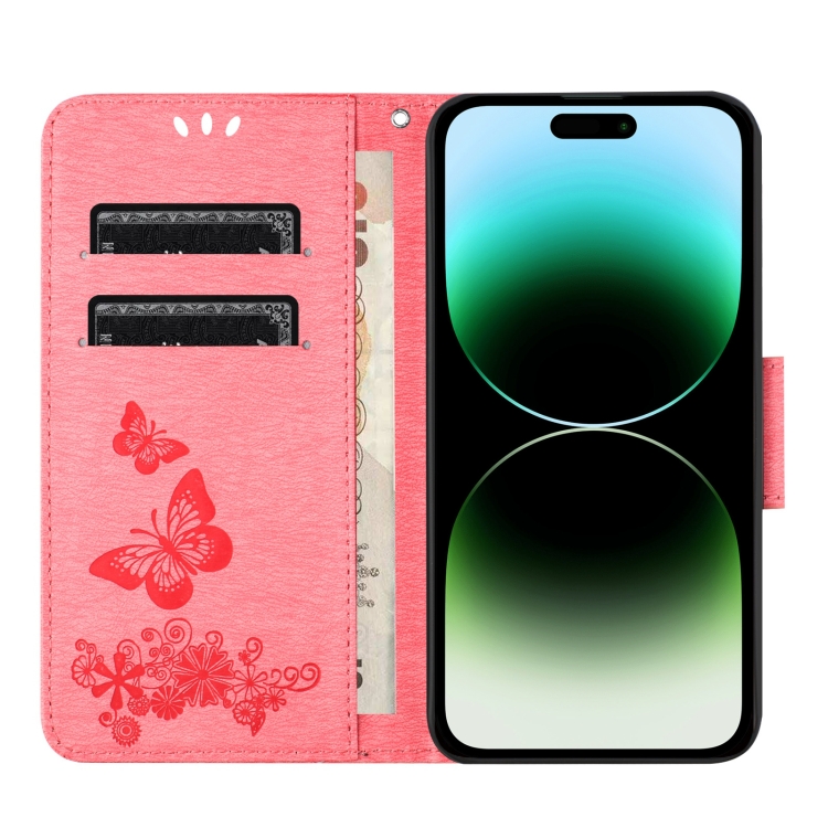 Funda para Teléfono iPhone 15 Pro Max Cuero con Tapa En Relieve de Mariposa (Rosa)