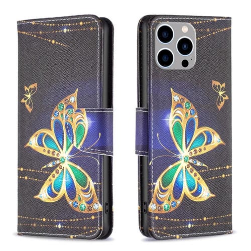 Pour iPhone 15 Pro Max Étui de téléphone en cuir à rabat à motif de dessin coloré (grand papillon)