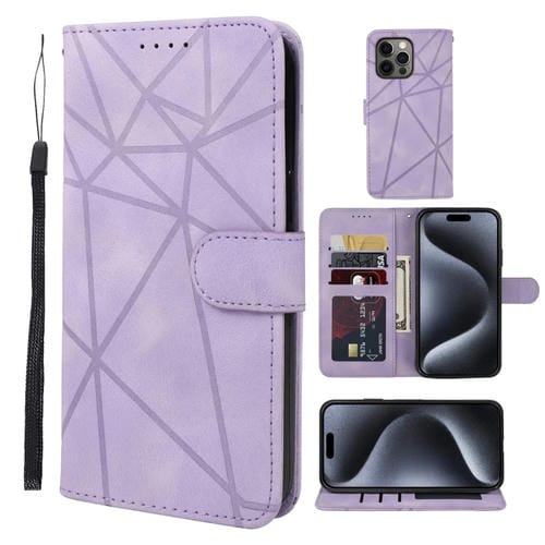 Funda para iPhone 15 Pro Skin Feel Cuero con Líneas Geométricas (Púrpura)