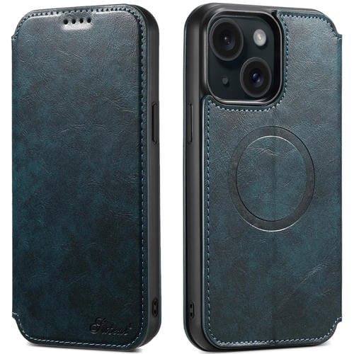 Funda para iPhone 15 Suteni J05 de Cuero Magnética para Teléfono Magsafe (Azul)