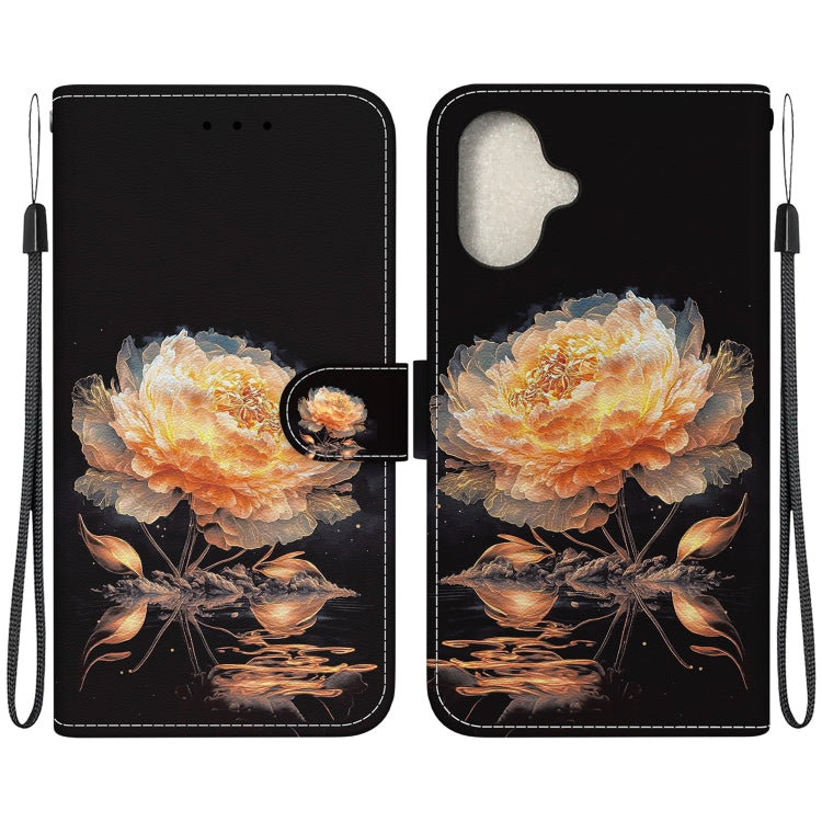 Pour iPhone 16 Étui en cuir à dessin coloré à texture cristalline (pivoine dorée)