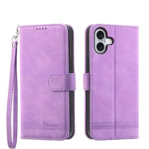 Funda para iPhone 16 Plus Dierfeng Dream Line TPU y Cuero PU (Púrpura)