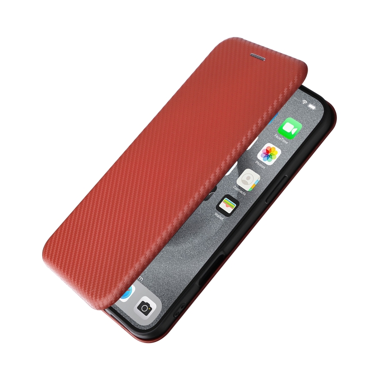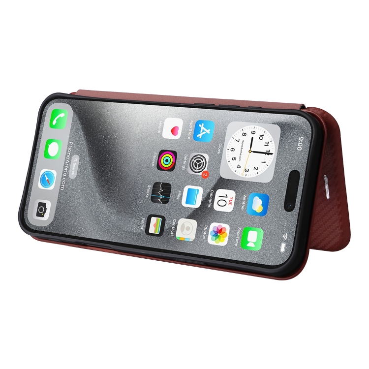 Funda de Teléfono para iPhone 16 Pro Max Cuero con Tapa Textura de Fibra de Carbono (Marrón)