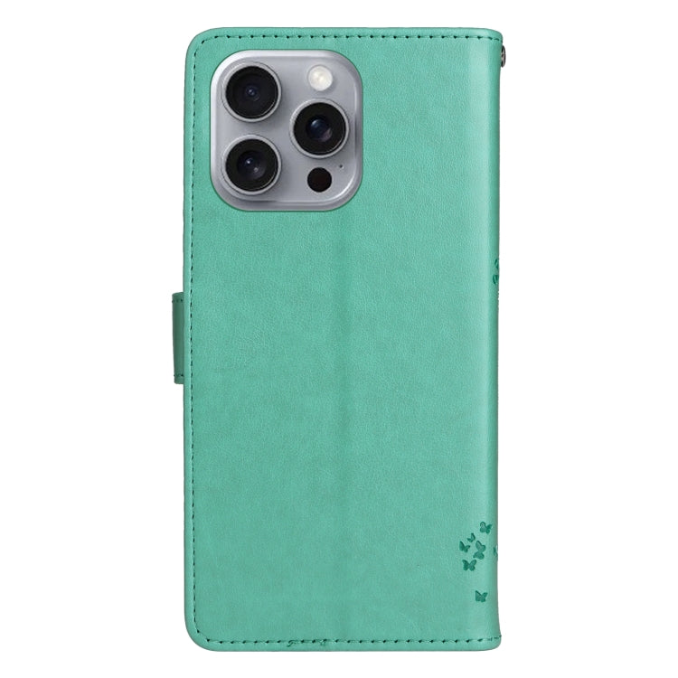 Funda para Teléfono iPhone 16 Pro Max Cuero con Tapa Patrón Árbol y Gato (Verde)