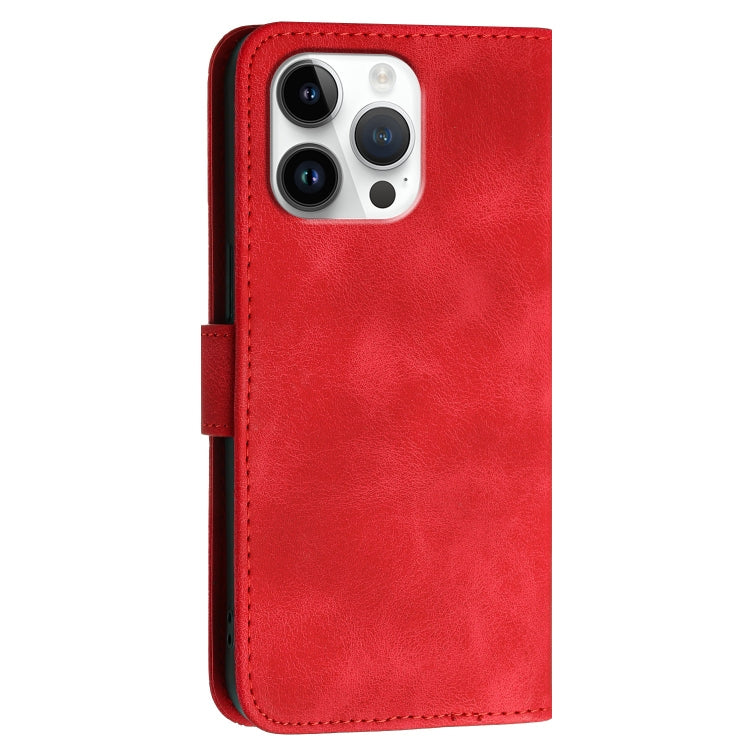 Funda de Cuero iPhone 16 Pro Max Yx0080 con Tapa Patrón Mariposa y Cuadrícula con Cordón (Rojo)