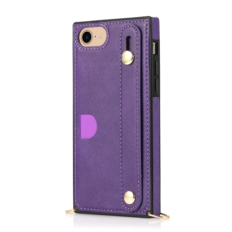 Correa de Muñeca Pu + Funda TPU para iPhone 6 a Prueba de Golpes con Cordón Cruzado, Soporte y Ranura para Tarjeta (Púrpura)