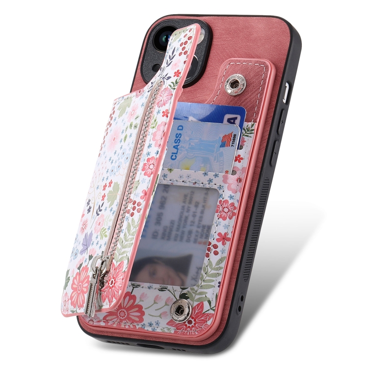 Funda Trasera para iPhone 6 Plus 6S Plus con Billetera y Cremallera Pintada Retro (Rosa)
