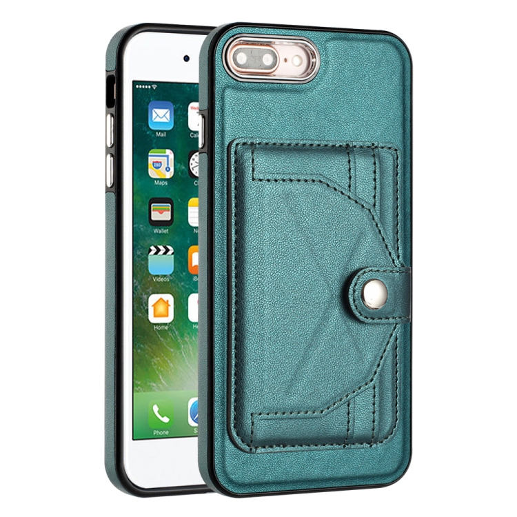 Estuche de Teléfono Cuero iPhone 6 Plus/7 Plus/8 Plus a Prueba de Golpes con Tarjetero (Verde)