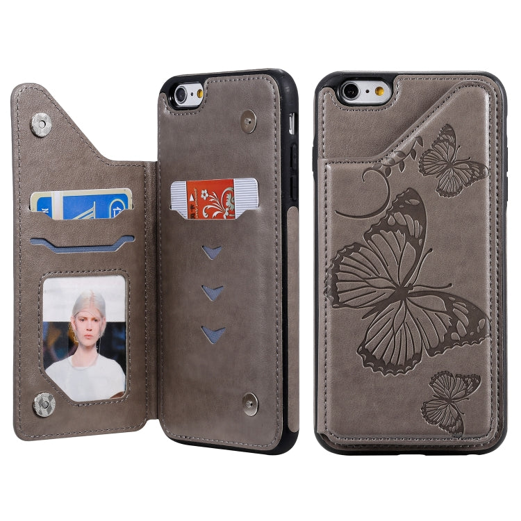 Pour iPhone 6 Plus Étui de protection antichoc à motif de gaufrage de papillon avec support, fentes pour cartes et cadre photo (gris)