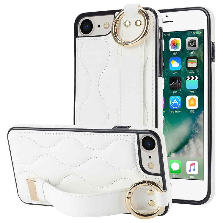 Funda para iPhone 7 Antideslizante Cobertura Completa Anillo PU con Muñequera (Blanco)