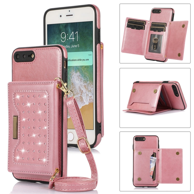 Estuche de teléfono iPhone 7 Plus 8 Plus cuero RFID tres pliegues con cordón (Oro Rosa)
