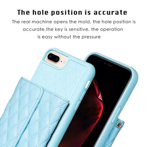 Estuche de teléfono iPhone 7 Plus 8 Plus Cuero Rómbico con Billetera Horizontal (Azul)