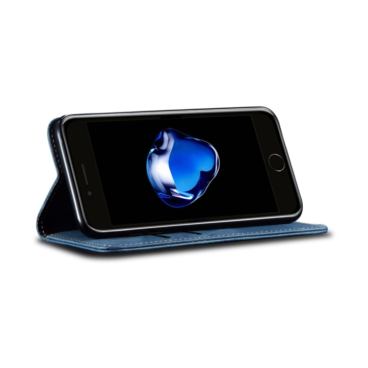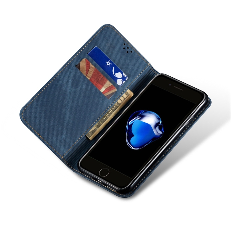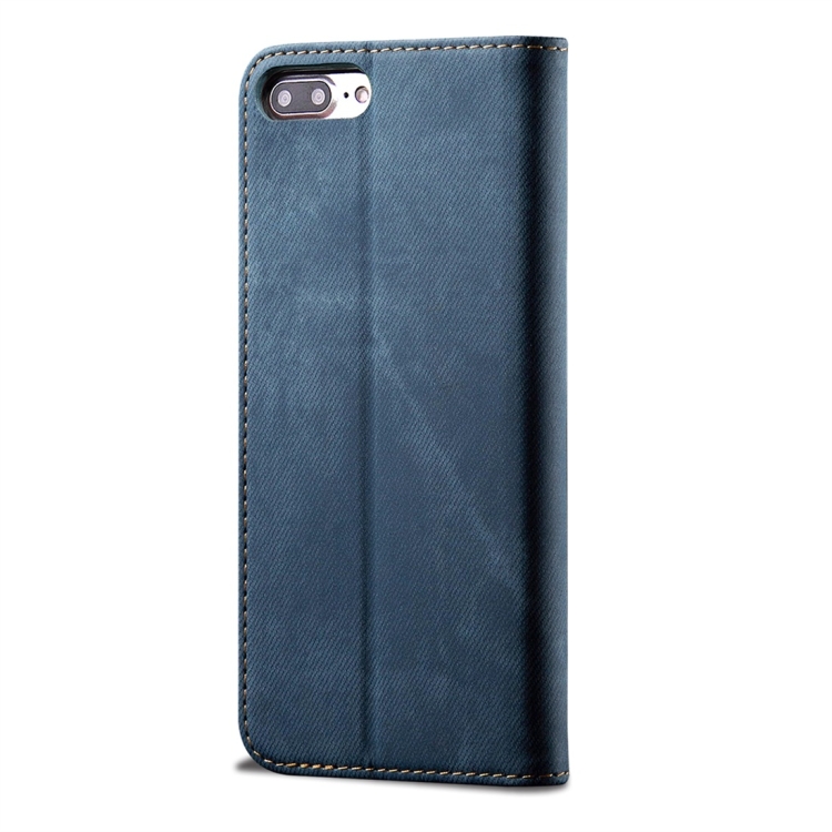 Funda para iPhone 7 Plus 8 Plus Cuero Tapa Horizontal Textura Mezclilla Soporte Ranuras Tarjetas Billetera (Azul)