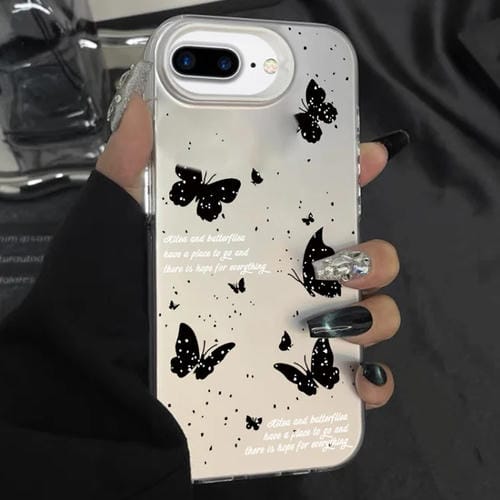 Funda híbrida para iPhone 7 Plus 8 Plus TPU pintura plateada PC mariposa de tinta blanca