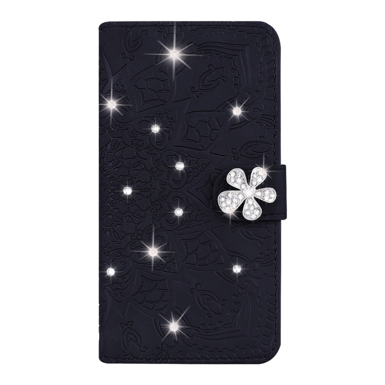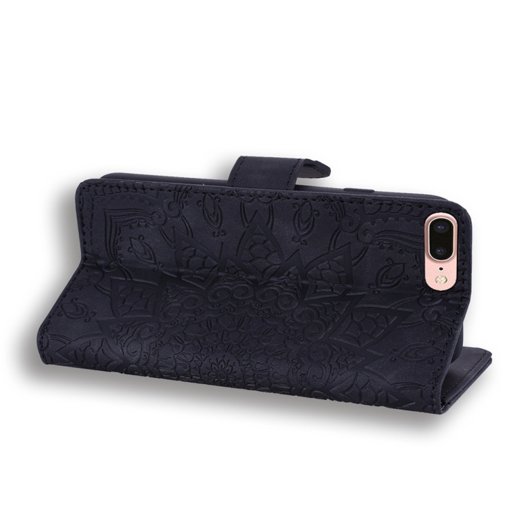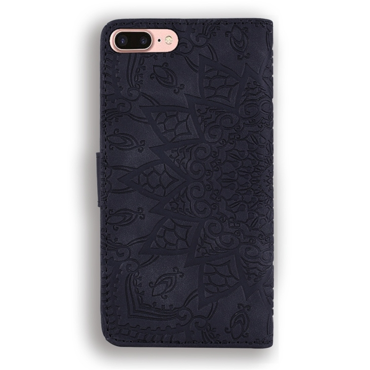 Funda para iPhone 7 Plus 8 Plus Cuero En Relieve Patrón Diamante Mandala Plegable Doble Billetera Soporte Ranuras para Tarjetas (Negro)