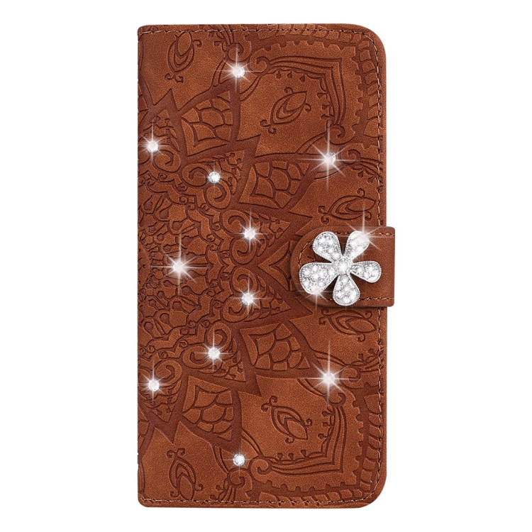 Funda para iPhone 7 Plus y 8 Plus Patrón Pantorrilla Diamond Mandala Cuero En Relieve Diseño Plegable Doble Billetera Soporte Ranuras (Marrón)