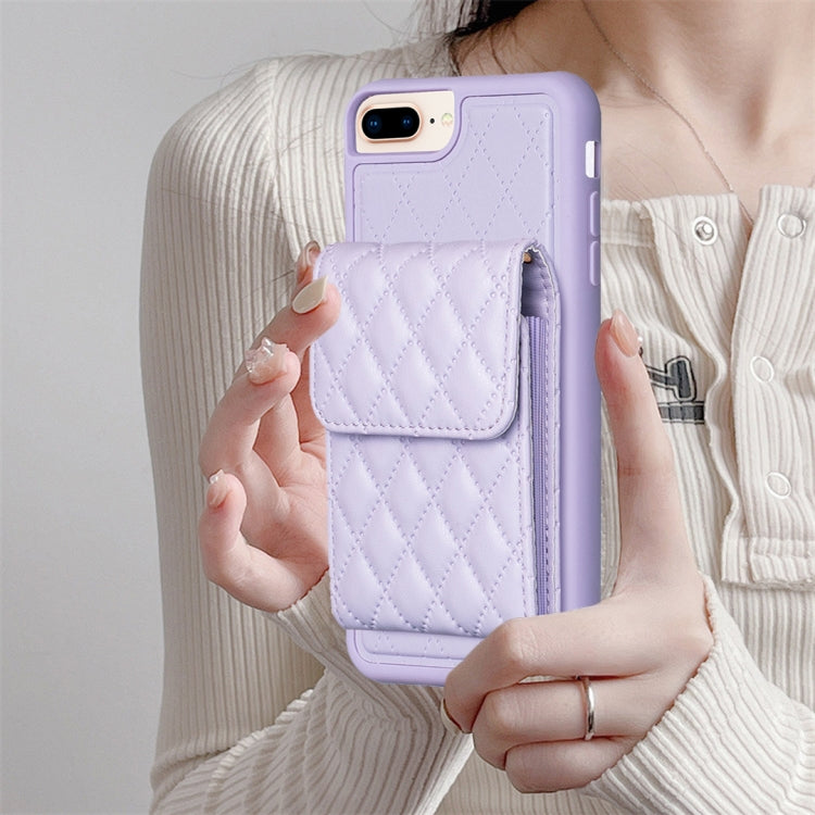 Funda Vertical Wallet Rhombic Leather para iPhone 7 Plus y 8 Plus (Púrpura)