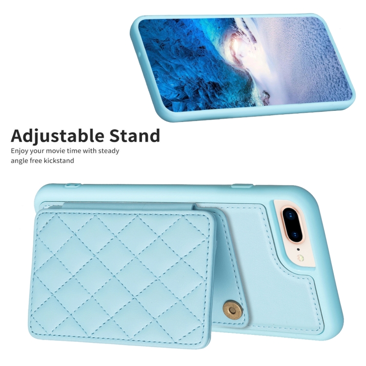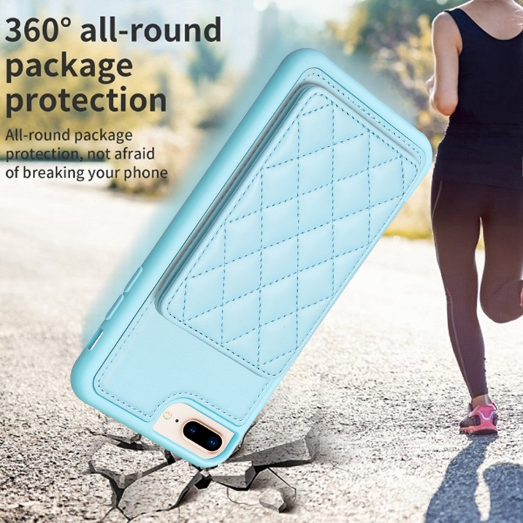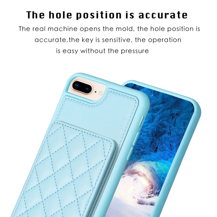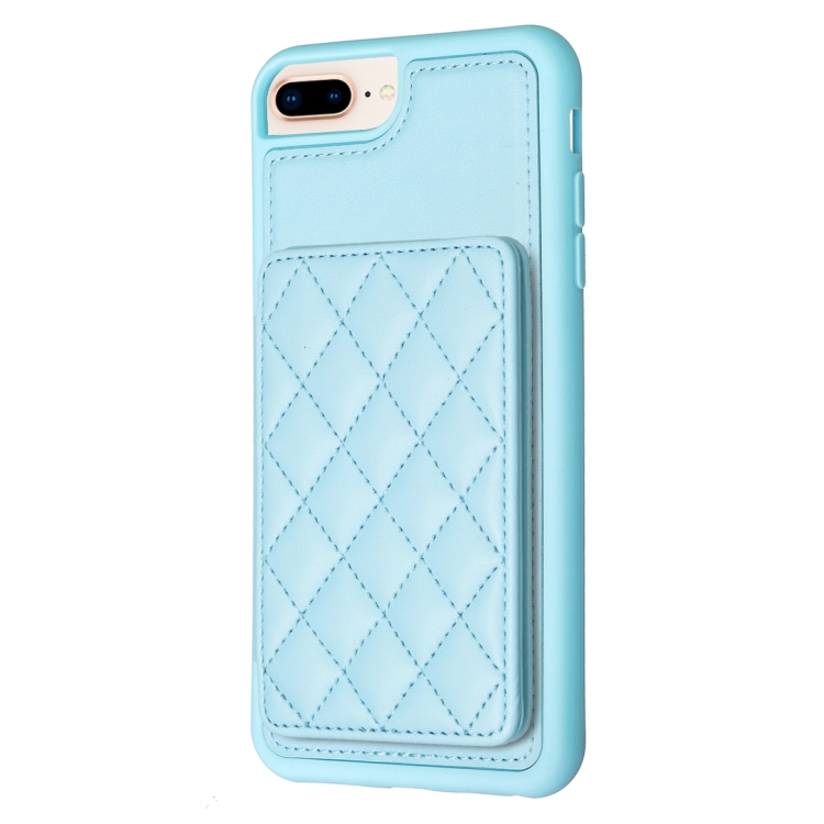 Funda para iPhone 8 Plus 7 Plus Bf25 Square Plaid Card Bag Holder (Azul)