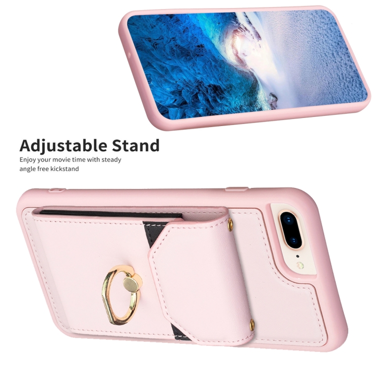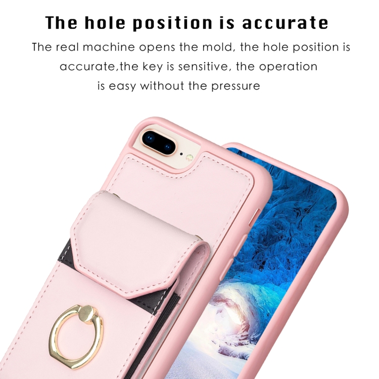Funda para Teléfono Bf29 para iPhone 8 Plus y 7 Plus con Soporte para Anillo y Bolsa para Tarjeta (Rosa)