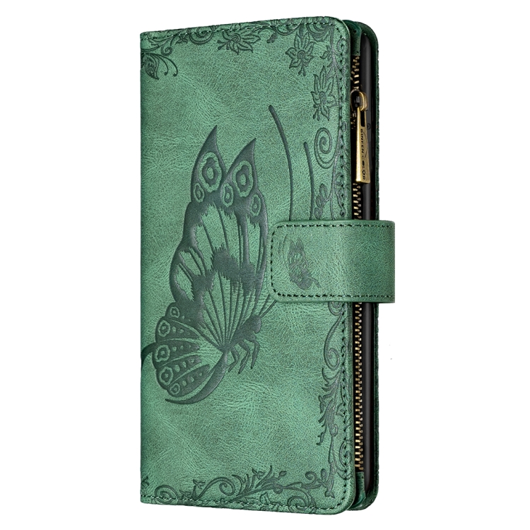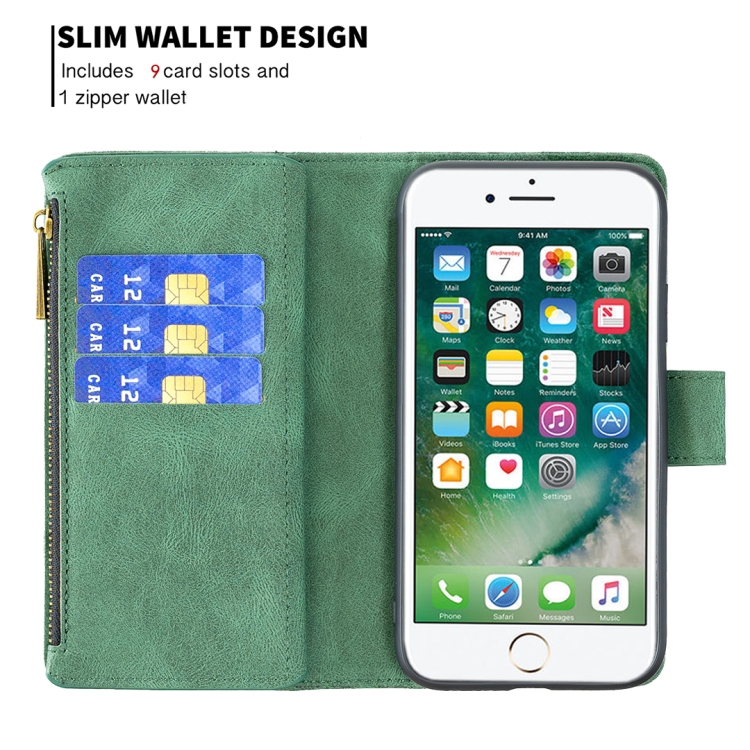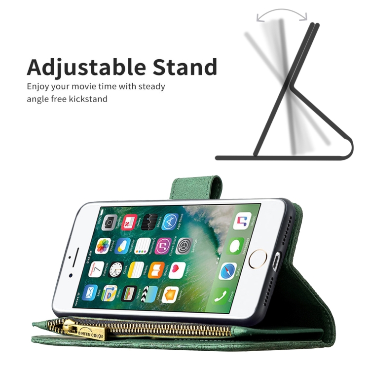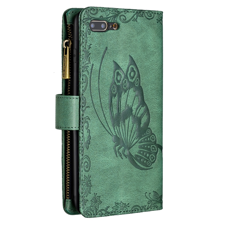 Funda de Cuero Flip para iPhone 8 Plus 7 Plus Flying Butterfly con Soporte y Billetera (Verde)