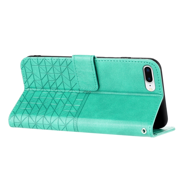 Funda de Cuero para iPhone 8 Plus/7 Plus con Textura Rómbica y Cordón (Verde)