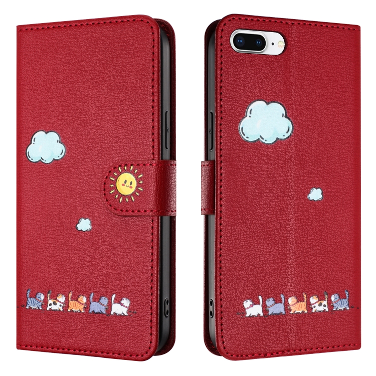 Funda para Teléfono iPhone 8 Plus 7 Plus Cuero Gatos Dibujos Animados (Rojo)