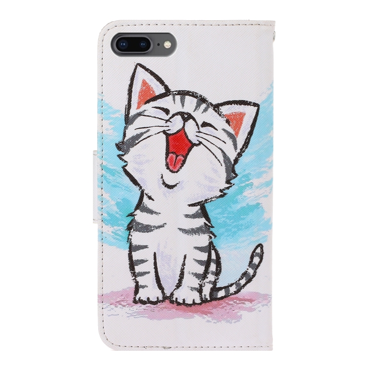 Funda para iPhone 8 Plus y 7 Plus Cuero Pu con Tapa Horizontal Dibujo 3D Soporte Ranuras y Billetera (Gato de Boca Roja)
