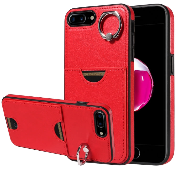 Funda para Teléfono iPhone 8 Plus 7 Plus con Soporte para Anillo y Ranura para Tarjeta (Rojo)