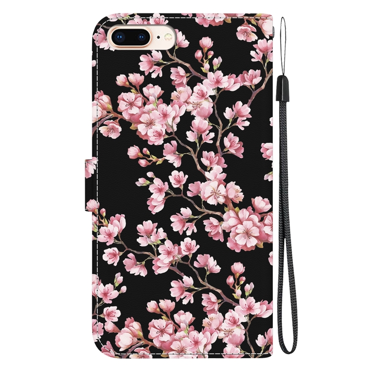 Funda para Teléfono iPhone 8 Plus/7 Plus Cuero Dibujo Coloreado Textura de Cristal (Flor de Ciruelo)