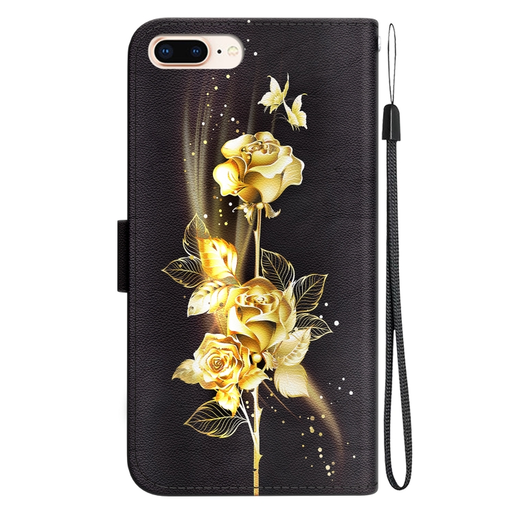 Funda para Teléfono iPhone 8 Plus/7 Plus Cuero Dibujo Coloreado Textura de Cristal (Mariposa Dorada Rosa)