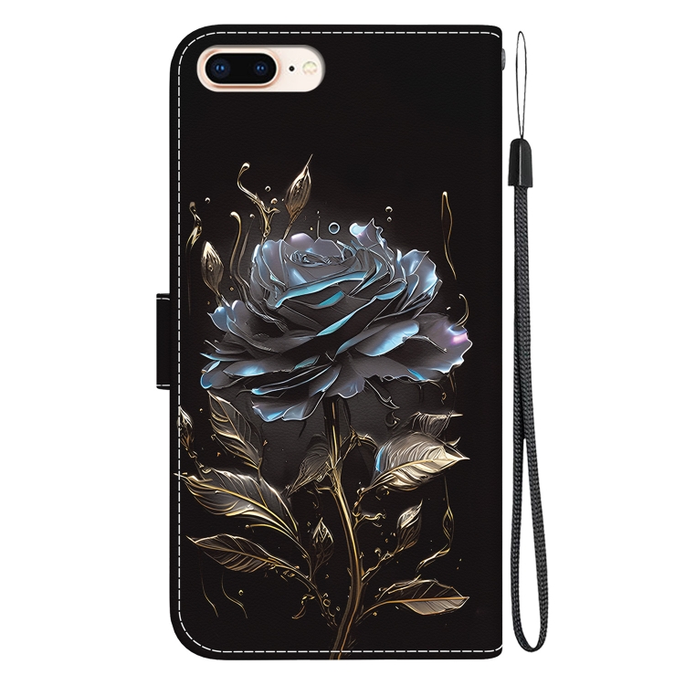 Funda para Teléfono iPhone 8 Plus/7 Plus Cuero con Dibujo Coloreado y Textura de Cristal (Rosa Negra)