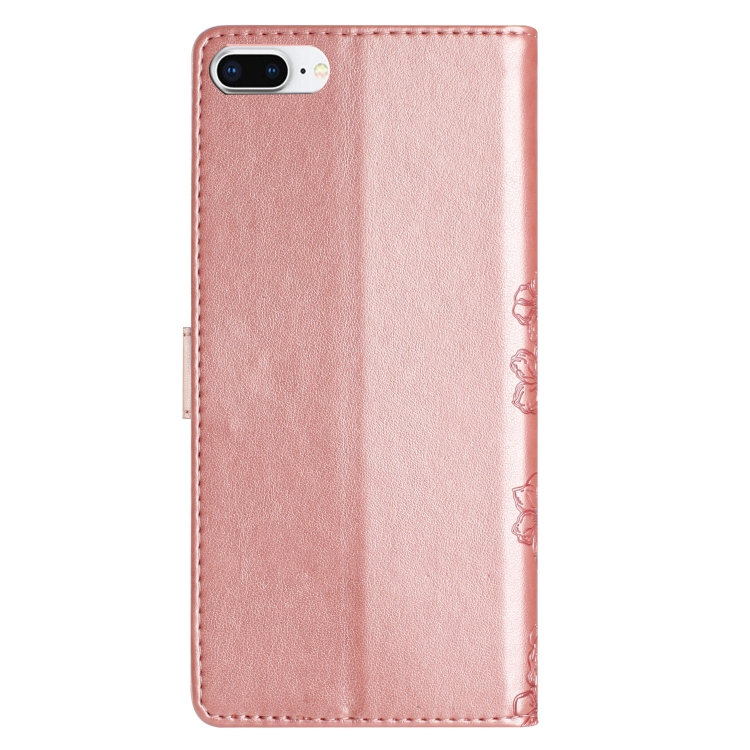 Funda para Teléfono iPhone 8 Plus/7 Plus PU Sensación de Piel Mariposa y Flor de Cerezo (Oro Rosa)