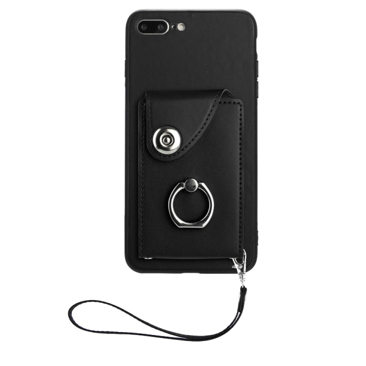 Funda para Teléfono iPhone 8 Plus/7 Plus Pu con Soporte para Anillo y Bolsa para Tarjeta con Cordón (Negro)