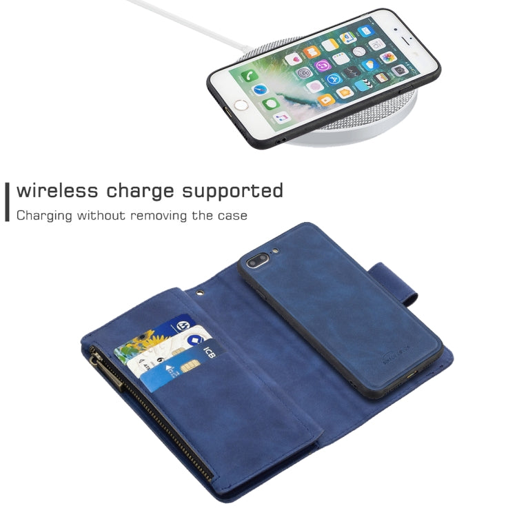 Estuche para iPhone 8 Plus Skin Feel Cuero PU Cremallera Magnética Desmontable Tapa Horizontal Ranuras Tarjetas Soporte Billetera Marco Fotos Cordón (Azul)
