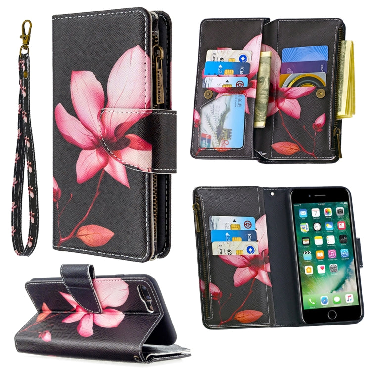 Funda de Cuero iPhone 8 Plus y 7 Plus Patrón Dibujo Colores Cremallera con Tapa Horizontal Soporte Ranuras Tarjetas Billetera (Lotus)