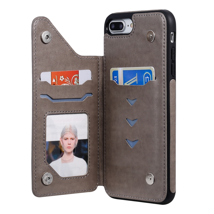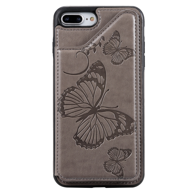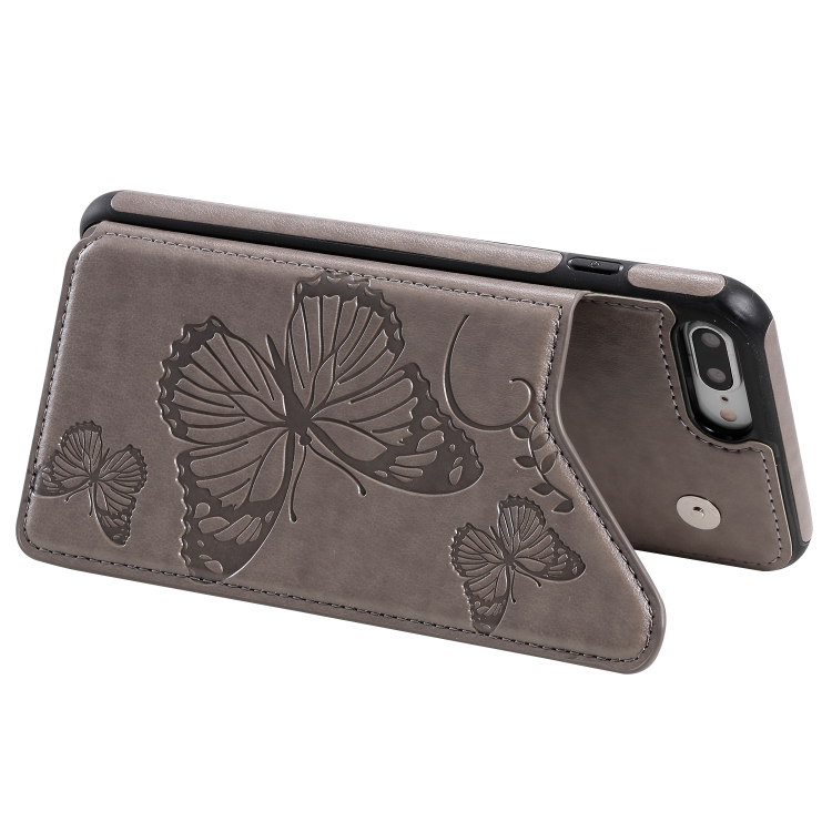 Funda Protectora para iPhone 8 Plus y 7 Plus Estampado Mariposas con Soporte y Ranuras para Tarjetas (Gris)