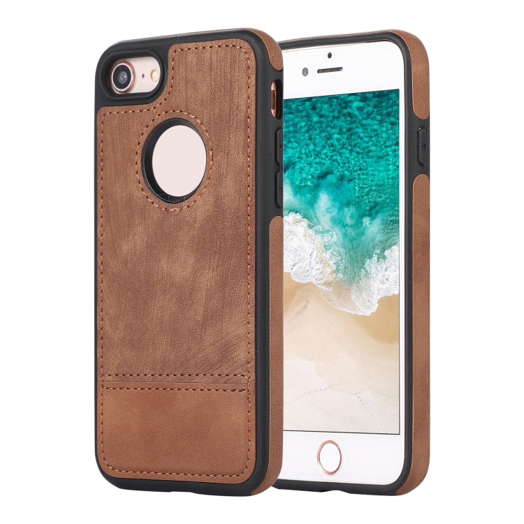 Funda para iPhone SE 2022/2020/8/7 Empalme Costura Caja de Teléfono de PU con Recorte (Marrón)