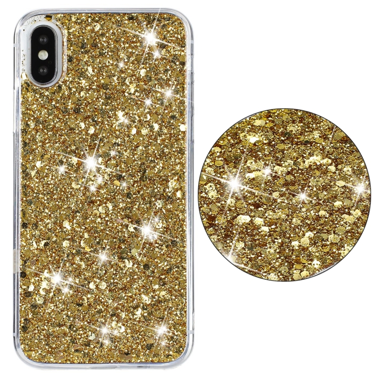 Estuche para Teléfono iPhone X Transparente con Purpurina en Polvo TPU (Dorado)