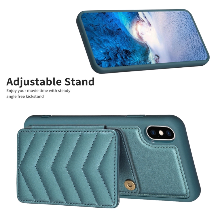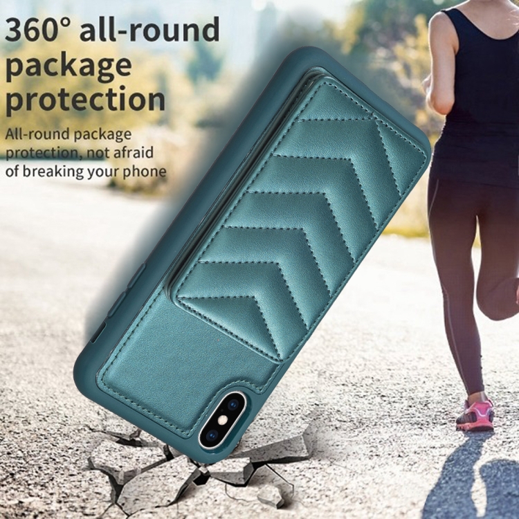 Funda para iPhone X Xs Bf26 Wave Pattern Porta Tarjetas Bolsa (Verde)