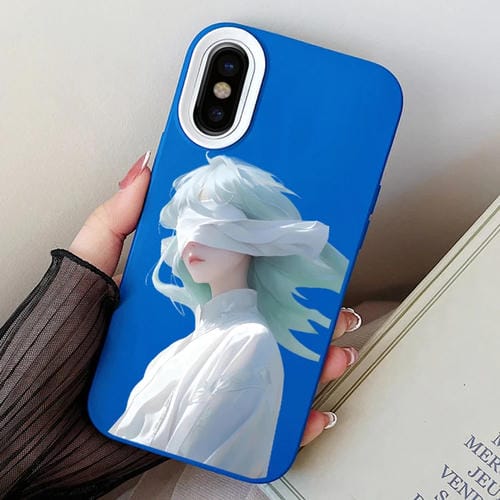 Estuche para Teléfono iPhone X Xs Blindfold Girl Híbrido TPU PC (Azul)