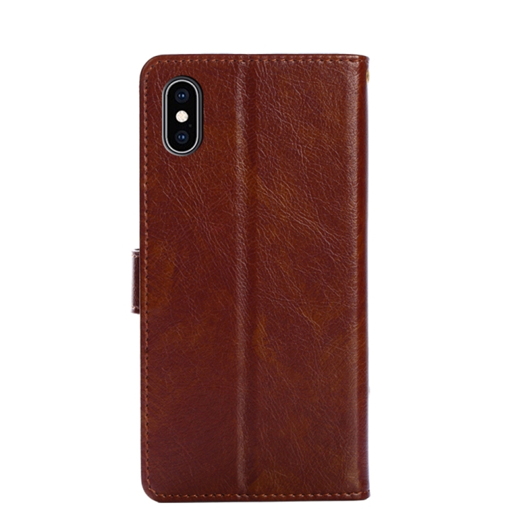 Funda para iPhone X Xs Bolso con Cremallera PU TPU Cuero Tapa Horizontal Soporte Ranura Tarjeta Billetera Cordón (Marrón)