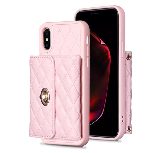 Caja de Teléfono Cuero Rombal para iPhone X Xs con Hebilla Metal Horizontal (Rosa)