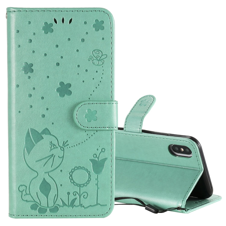 Funda de cuero Cat Bee para iPhone X / Xs con tapa horizontal, soporte, ranuras para tarjetas y billetera (Verde)