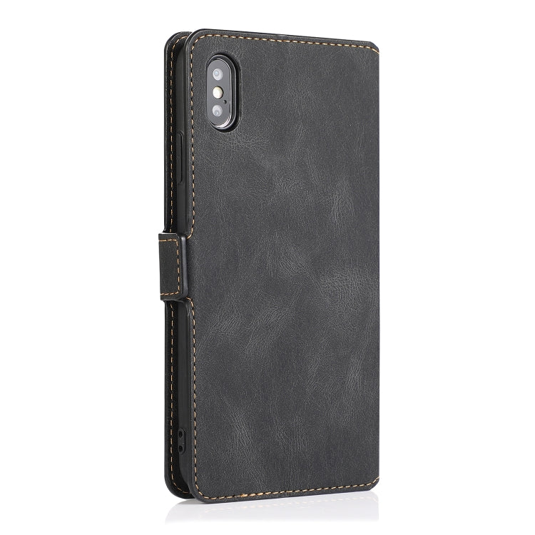 Estuche de Cuero para iPhone X Xs Cierre Magnético Tapa Horizontal Soporte Ranuras Tarjetas Marco Fotos Billetera (Negro)